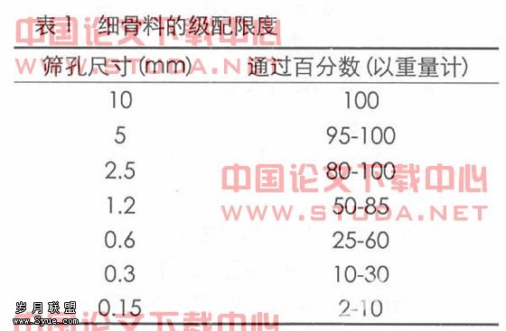 3.1.2砂:宜选用中粗砂,其细度模数应大于2.5,砂料含水率宜为5-7%,砂子中粒径小于0.075mm的颗粒不应超过20%,否则会妨碍骨料与水泥的良好粘结。砂粒级配应满足表1要求。