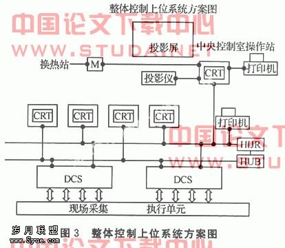 中央控制室是一个集中控制的地方,在此处,可以实现控制系统的集中管理,为此在目前现状的基础上必须完善上位控制管理系统,以便实现控制的更加直观有效。从而扩大控制承载功能,为实现从锅炉本体燃烧控制到无人职守热力站换热的整体控制作扩展。整体控制上位系统方案如图3所示:?
