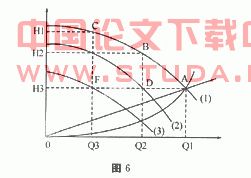 许多补水泵都维持恒压的情况下改变给水量(流量Q)从图6可知:当流量Q1降至Q2若不改变水泵转速,扬程将升至B工作点,其功率可用H2*Q2来计算,对应面积BH20Q2。原A工作点功率Q1*HT图上面积AHTOQ1,两者所耗功率变化不大,如果我们降低转速至(2)即可节能Q2*H2-Q2*HT=Q2(H2-HT),图DBH2HT的面积即是节能值。再如流量变至Q3若仍以额定转速运行,所需功率Q3*H1,浪费能量为FCH1HT。?