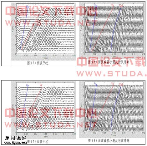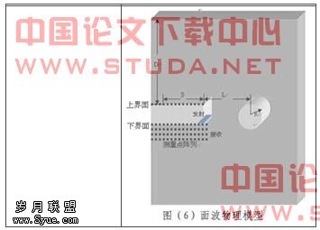 在洞壁激发和接收中面波的干扰问题,原清华大学声学教研室的沈建国教授曾经作过物理模型试验,见图(6)。模型设计在隧道前方有一个溶洞,洞径与隧道断面相当,分别在洞壁的4个深度布置接收排列。