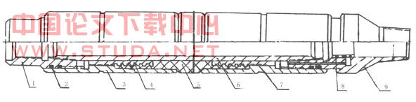1-上接头 2-“O”型圈 3、7-胶筒座 4-硫化芯子 5-胶筒 6-中心管 8-滤网罩 9-下接头