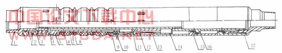 9-密封环 10-防座剪钉 11-卡瓦座 12-卡瓦 13-锁套 14-解封套 15-活塞 16-连接头 17-下接头