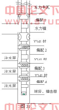 b.管柱结构:如图21所示。主要由水力卡瓦+偏配+水力锚+Y341系列注水封隔器+偏心配水器+底部球座+筛管+死堵组成。