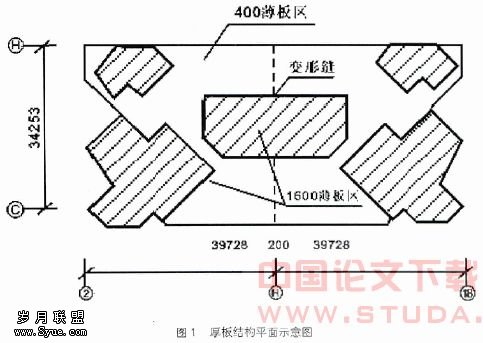 本商住楼工程为框支剪力墙结构形式的高层建筑,3层以下为大空间商场,3层以上是剪力墙结构的住宅楼,第3层为厚板式结构转换层,其结构平面(见图1)。
