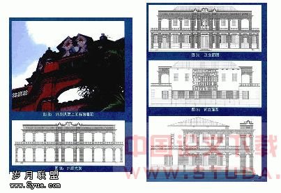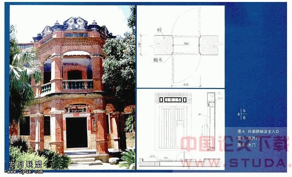 整个宋宅采用双层多柱廊作为建筑的入口,使得整个宋宅十分典雅,有着强烈的体积感,通过柱式平面和立面构成的变化产生了丰富的柱廊单元。(图4)