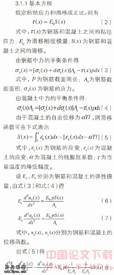 为了能为裂缝控制设计提供理论依据,构造钢筋对非荷载裂缝的控制不能仅仅停留在定性的阐述上,必须从定量的理论上加以研究,这就涉及到混凝土的应力应变分布规律、裂缝宽度随配筋率的变化规律等内容。