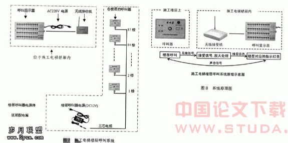 楼层呼叫显示器呼叫,发出无线信号。位于施工电梯轿厢内的接收装置接收无线信号,放大处理后连接到楼层呼叫显示器上。当某一层有呼叫时,楼层呼叫显示器上对应的指示灯点亮,并有声音提示,司机根据指示灯及声音提示可以知道那一层有呼叫,以便进行应答。