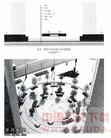 功能的复合化是指同一空间中多种功能层次的并置和交替,对于楼前广场来说,与建筑、道路等元素的相对关系是重点,系统和高效是核心,表现为如何协调好来自城市各个方面车流、人流和物流的集散问题。楼前广场相对较小的地表容量远远不能满足高层建筑的需求,因此楼前广场垂直空间的综合开发是重要手段,这样能把地表集散人流有效地分散到多个垂直交通面上,既解决了交通问题又能创造更多的公共空间,使建筑与城市的衔接由单一面变为多层面。按照垂直向的区位,楼前广场可分为:架空层、地表层、地下浅层、地下中层、地下深层等层次,这其中包括城市架空交通、地面交通、综合管线、商业、停车场、地铁等功能。以香港中环区高层建筑的楼前广场为例,可以看出越是接近地面层,其空间性质越是开放和密集,其区位价值越高,越适合发展城市公共空间。