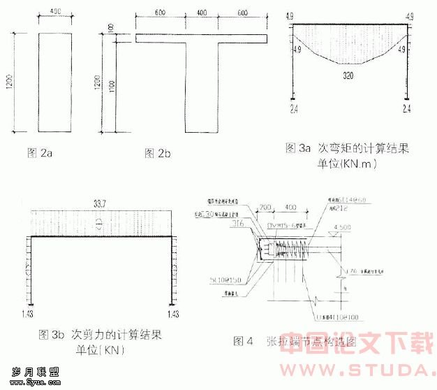 次剪力则根据构件各截面次弯矩的分布按结构力学方法计算,次弯矩的计算结果见图3a,和次剪力的计算结果见图3b。