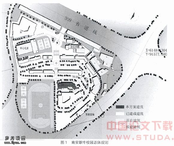 在当代事业不断的大好形势下,学校招生规模在扩大,校园建设速度也在提高,在建设过程中面临校园总体布局重新整合的问题,新旧建筑和谐共处的问题,以及实现校园建设可持续发展的问题等。在既有环境中,一座新建筑的介入,建筑设计必须从建设基地特定的条件和人文环境出发,把新建筑视为既有环境中的一个重要组成部分,通过优化设计要素进行环境整合,只有这样,才能在一定程度上体现环境的特殊性,才能表现建筑师对建筑与环境理解的个性化,从而体现建筑与自然的和谐关系,使得建筑风格不仅兼具特定地域的环境特征和人文特色,又能提高校园整体可持续发展的适应性。