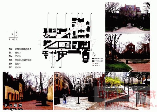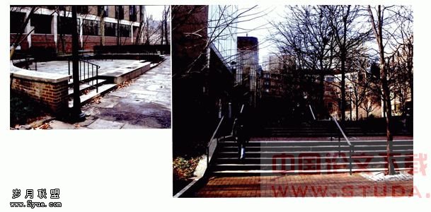图8 视点5局部放大和高差处理 图9 视点1的台阶处理 图10 视点6 图11 视点8 图12 从视点9看路易康的理查德医学院 图13 图14 图15 视点7 图16 超级链接 图17 铺地叙事