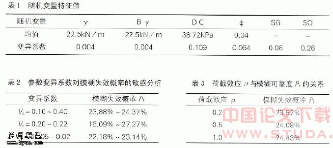 6.1地基承载力的模糊概率分析的主要影响因素为强度参数c、φ的变异性,而γ的变异性可以不计,计算中按常量考虑;
