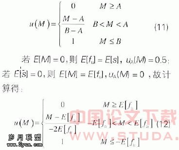 由于M同时具有模糊性,在此设M的失效程度隶属函数uA采用降半梯型分布[7],即