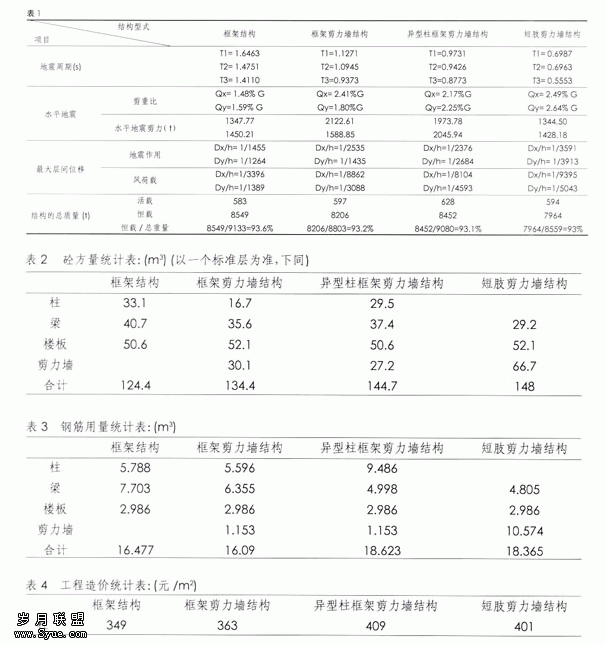 对以上所述六种结构形式,本人统一采用“建科院SATWE”进行计算,计算结果列表表示。
