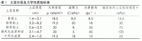 区域范围内所分布与边坡加固治理设计相关的土层及其力学性质如表1所示。