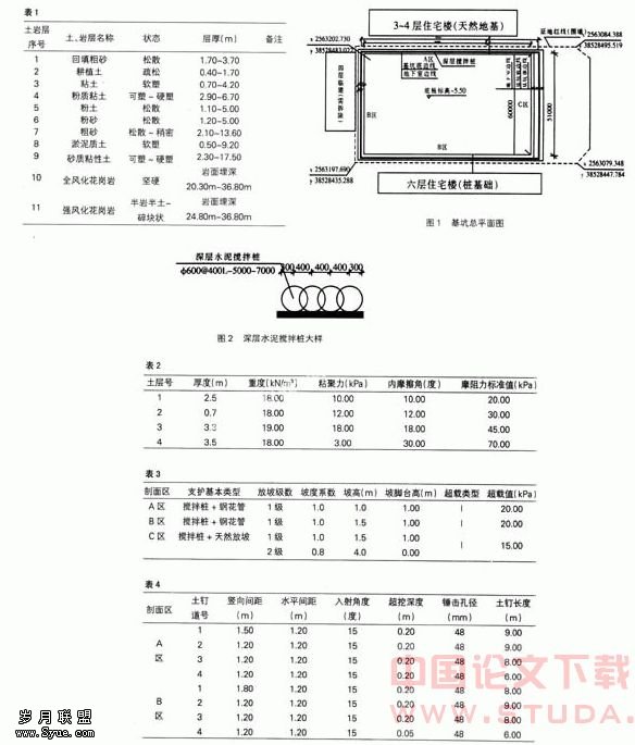 关键词:深层水泥搅拌桩;钢花管喷锚;建筑基坑;监测