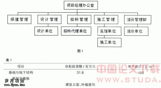 按项目建设的过程考虑,在项目实施中有有工程项目策划和决策阶段、工程项目前期阶段(主要为报建、报批工作)、工程项目设计阶段、工程项目招标阶段、工程项目施工阶段、工程项目竣工验收和评价阶段。按照该工作阶段划分,应设立专门的管理部门对相关单位进行管理(见图1)。