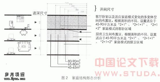 可变住宅是为解决化大规模住宅建设中的问题出现的,在西方曾经盛行一时。国内在80年代时对可变住宅(也有称为大空间住宅灵活设计)也有过研究,如鲍家声教授的无锡支撑体住宅的实践。由于那时住宅标准偏低,建筑结构技术水平不高,加上人们生活下富裕,参与能力有限,使得大空间住宅体系的优势没有充分发挥出来。随着市场的,建筑技术条件的进步,如无梁、柱大空间楼板体系的产生运用,工业化轻质隔墙的飞速发展,设备管线的更新等等。这些都为“2+X”可变模式在中小户型住宅设计中创造了有利条件,为发挥其灵活适应和空间复合的特点奠定了基础。