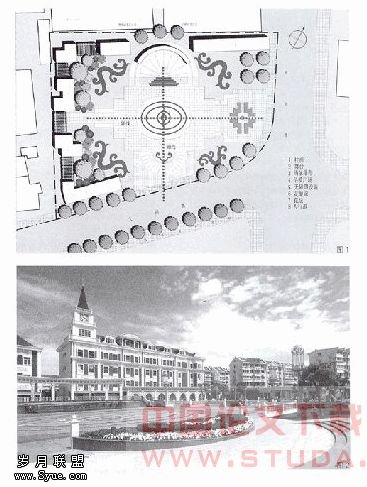 广场周围的建筑形式影响着广场的风格面貌。广场的北立面为欧式风格,其雄伟挺拔的欧式古典造型建筑成为本地区的地标性景观。广场东、南面为城市干道,空间开阔。广场设计既要以建筑语言建立对话关系,又要与空间环境相互融合,真正发挥广场对美化城市景观,改善城市面貌的作用。(如图2)