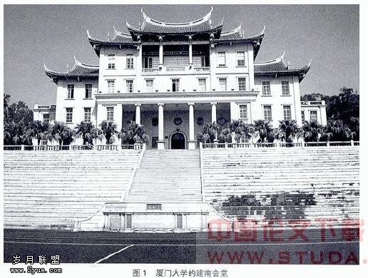 在我国建筑界,通常将1840年~1949年间建造的建筑称为近代建筑,高等院校老校区文物建筑可分为两类:一类是已纳入各地优秀历史建筑保护名录的历史建筑,其历史和文化价值已得到普遍的认同;一类是尚未纳入保护名录,但建成时间在30年以上并有下列情形之一:建筑样式、施工工艺或工程技术具有建筑特色和研究价值的建筑物,如上海大学科学馆(早期主义风格);反映地域建筑历史、艺术特色的建筑物,像厦门大学建南大会堂(图1);建筑界具有较大影响力的著名建筑师的优秀作品,如杨廷宝设计的四川大学理化楼。