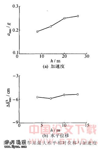 可以看出,随着埋深的加大,水平相对位移与加速度都有一定的增加,但幅度不大。