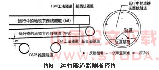 ⑤ 按照设计要求,在盾构穿越前,对运行隧道进行监测布控(见图6)。