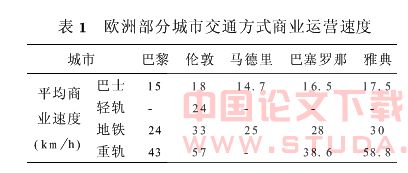 不难看出,欧洲城市铁路的运营速度基本上均在60km/h以下.