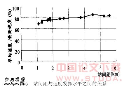 轨道交通系统车站间的距离是影响平均速度的重要因素,站间距越大,提高最高速度的效果愈明显.相反,距离越近,最高速度提高的效益越差.