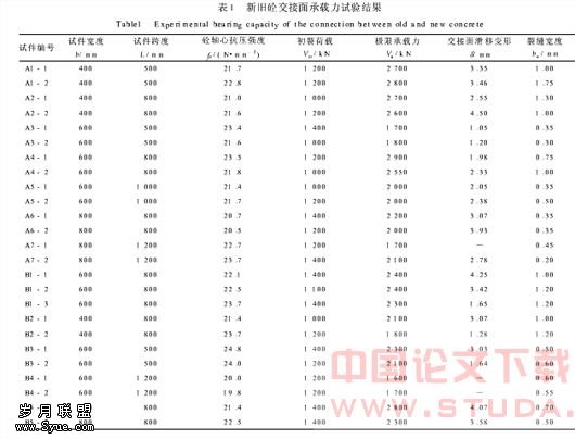 3)新旧砼交接面承载力可以按公式Vu=0.227fcA进行计算.