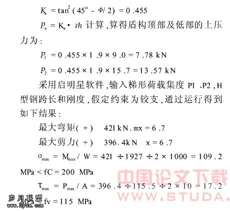 可以盾构为后座,用枕木垛支撑洞口墙体,自上而下凿除,当洞口加固范围因条件限制达不到要求时,经验算后可在盾构底以上一定高度范围堆放qu=0.1~0.2Mpa的夯实回填土,以减少加固土体承受的正面土压力而保安全。