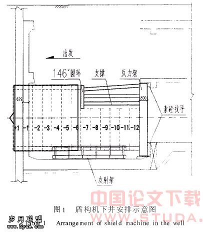 盾构出洞是指盾构机安装调试完成后,对准设计中心点、按照中心线路,自始发井出发,穿过井壁,推过整个加固区的施工过程。它涉及到盾构机的安装、布置、调试及其所需的配套设施的准备、井壁混凝土的处理、井外地基处理、洞门防流水涌砂处理、盾构机推进控制、管片拼装和环境保护等工作。
