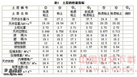 该区间隧道区域的土层主要为第四系全系统人工填土层(人工堆积Qml)、第Ⅰ陆相层(河床~河漫滩相沉积层Q43al)、第Ⅰ海相层(浅海相沉积层Q42m)、第Ⅱ陆相层(河床~河漫滩相沉积层Q41al)、第四系上更新统第Ⅲ陆相层(河床~河漫滩相沉积层Q3cal)、第Ⅱ海相层(滨海~潮汐带相沉积层Q3dmc)及第Ⅳ陆相层(河床~河漫滩相沉积层Q3cal)。盾构主要穿越④、④3、⑤、⑥和⑥4等土层,土层的性能指标见表1。