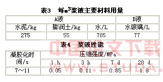 在盾构推进同步注浆后,为进一步加强土体后期强度和空隙填充密实度,根据地面监测变形情况,进行壁后补压浆,浆液为双液浆,壁后注浆压力一般控制在0.2~0.5 MPa,注浆量一般控制在0.2~2 m3。浆液配比及浆液性能见表3、表4。