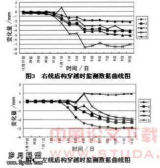 用连通管监测左、右线隧道盾构穿越王仲山故居时的沉降曲线见图3、图4。