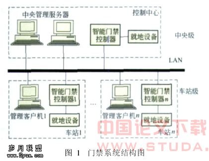 车站级门禁系统也称为分管理中心,主要有车站门禁工作站,设置在车站站长室中,对车站等独立的防护实体进行监控管理。车站级门禁系统不具备全线门禁系统的配置、管理功能,但可以通过门禁工作站来实现对本站内门禁系统的管理、监控和维护。