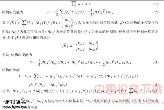 在应用最小总势能原理求基于位移法的结构正则方程时,相关位移对总势能的贡献是通过与之有关的独立位移和指定位移表达的.结构的总势能为