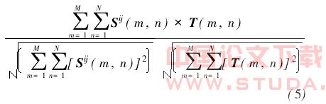 式中,T是Mpixel×Npixel的模板图像,Sij是位于原图像(i,j)处被模板图像覆盖的Mpixel×Npixel的子图像.当R(i,j)大于某一设定的阈值时,认为该子图像与模板图像相似,即为目标.