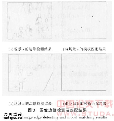 图3是场景a、b的边缘检测结果及模板匹配的结果.
