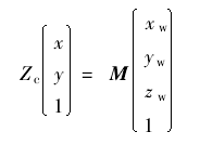 可以将图像坐标系中的坐标值(x,y)转化为世界坐标系中的坐标值(Xw,Yw,Zw),从而定位到实际拍摄场景中,其中M为摄像机的参数矩阵.