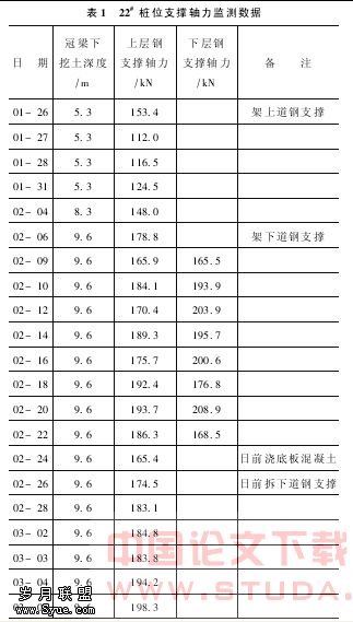 每天的测量结果形成表格并与支撑轴力的设计值进行比较,连同其他的监测项目以日报的形式上报监理部门。