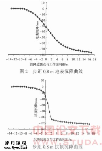 3. 1 步距 0.8 m 地表及拱顶沉降规律