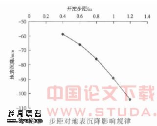3. 3 不同步距对拱顶及地表沉降影响规律