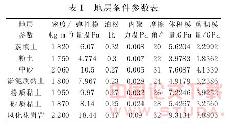 本文以深圳地铁世界之窗站至白石洲站浅埋暗挖地铁隧道地质条件为基础, 围岩力学参数见表 1。