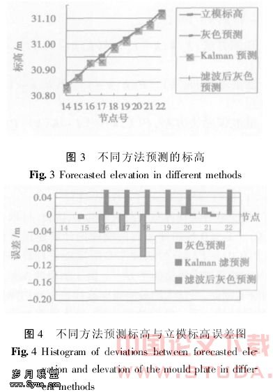 2)灰色理论预测的结果更接近实际立模标高,而通过Kalman滤波法对预拱度实测数据进行滤波后,再用灰色理论进行预测后的标高与实际标高的误差更小,通过Kalman滤波法与灰色理论的结合对施工监控的线形进行预测,可用于施工监控。