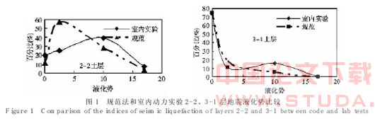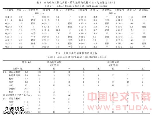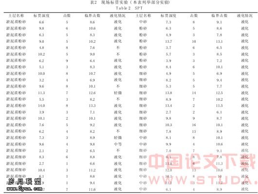 可能发生液化的土层主要是 2-2 层和 3-1 层, 随土壤种类、厚度、埋深、有无结构影响, 赋存条件的不同, 发生液化的程度和液化可能性不同, 通过现场液化和室内研究的统计分析, 提高判别的效率和准确性。
