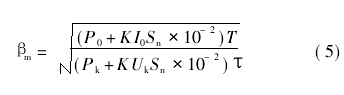 式中,P1、P2为变压器高压和低压侧测得的有功功率,β为变压器的负载率,Sn为变压器的额定容量,Pk为变压器的短路损耗,P0为变压器的空载损耗。cosφ2为变压器低压侧功率因数。