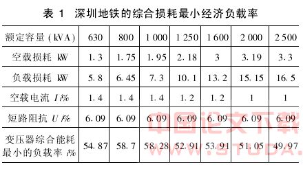 表1数据是根据上述公式计算出的深圳地铁采用许继变压器厂各种干式变压器的参数及其综合损耗最小时的负载率值。
