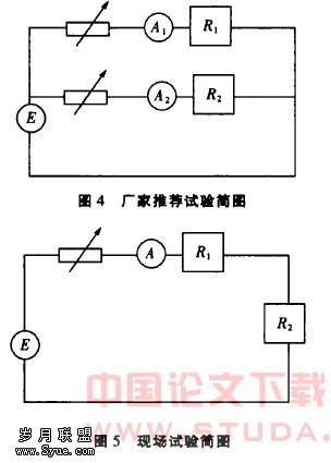 试验方式的确定:检查快速闭锁功能时,GE公司推荐的试验方法需要两路同源的电流源,分别注入进出线保护装置(见图4),试验时由于仅有一套继电保护测试仪,产生两路同源等值电流接线复杂,试验电流不易保持等值。经过分析我们认为可以采用一套继电保护测试仪的一路电流源进行测试,现场测试时把出线保护装置R1与进线保护装置R2串联连接(见图5)注人一路电流进行试验。这种方法产生了同源同流的试验电流,接线简单,试验方便,满足了测试的要求,顺利完成了快速闭锁功能的检查。