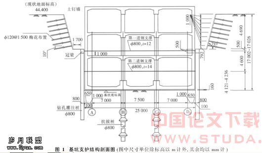 关键词:土钉墙;钻孔灌注桩;钢管支撑;围护结构