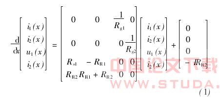轨道—排流网—埋地金属—大地的电阻分布如图5所示。由图5所示分布网络,根据[2],电压和电流分布矩阵形式见式(1)。